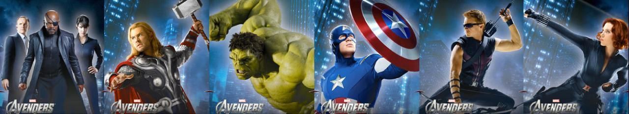 First, you can glance over the high-definition versions of the two new Avengers promo banners by clicking either image, below: