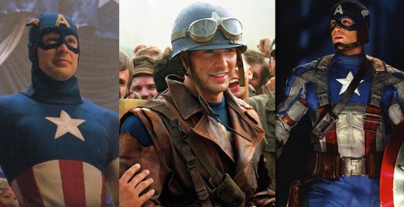 Marvel provided set visits for Captain America last fall, and Super Hero Hype has a massive interview with the cast – Chris Evans and Hugo Weaving – and producer Kevin Feige. Check out the more interesting excerpts below regarding the plot, the Cap costumes (yes, plural), and the fantastic look of the Red Skull.