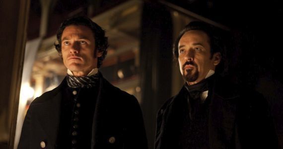 John Cusack headlines The Raven as famed author Edgar Allan Poe, who is often credited as the inventor of the detective fiction genre. In McTeigue's film, the man gets caught up in a dangerous (and deadly) game when his stories become the basis for a madmen's murder spree in 19th century Baltimore. Local detective Emmet Fields (Luke Evans) thereafter recruits Poe to assist him in tracking down the serial killer; the stakes are soon raised even higher when the writer's beloved, Emily (Alice Eve), is also targeted by the mysterious murderer.